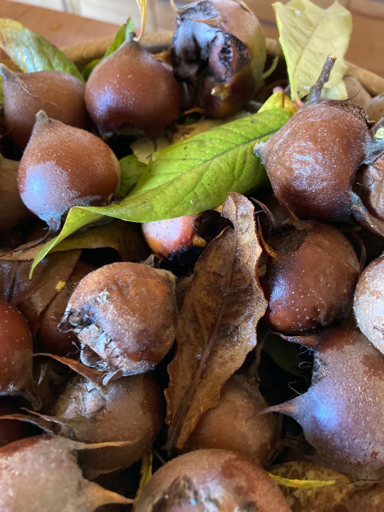 [folienstern:] „Mal rausfinden, was man so alles mit Mispeln machen kann… Die allwissende Müllhalde sagt Gelee und Mispelbrot und Mus …“