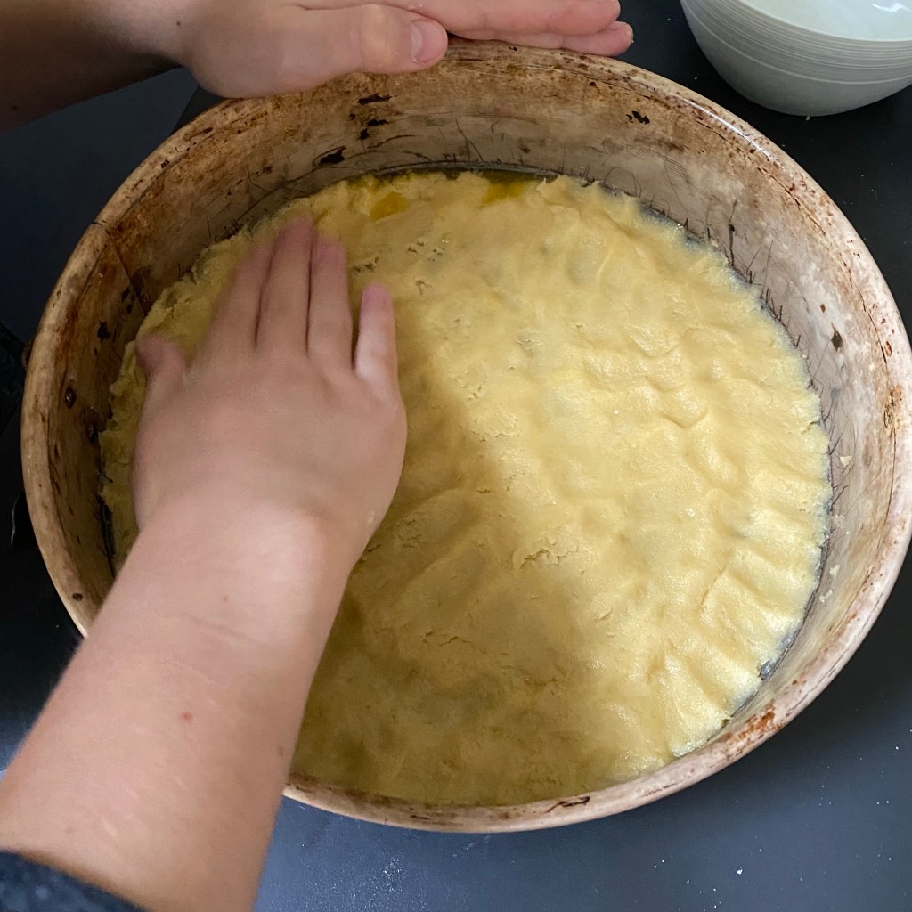 [kneteeis:] „Okay. Ich mache den Quark-Grieß-Kuchen von meiner Kinderfrau? Und Du machst den Käsekuchen aus der Backmischung?“