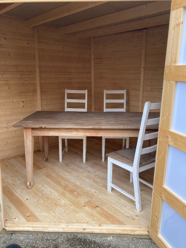 [Vater:] “Wollen wir jetzt den Tisch ins Gartenhaus stellen?”