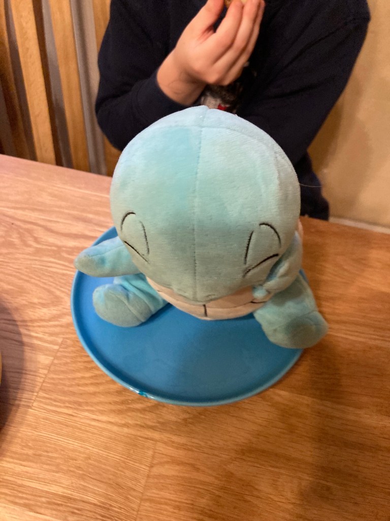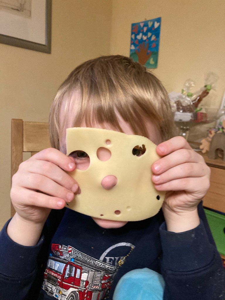 [Etwas später. KJ:] „Guck mal, ich bin ein Käse! Und Schiggy frühstückt auch.“