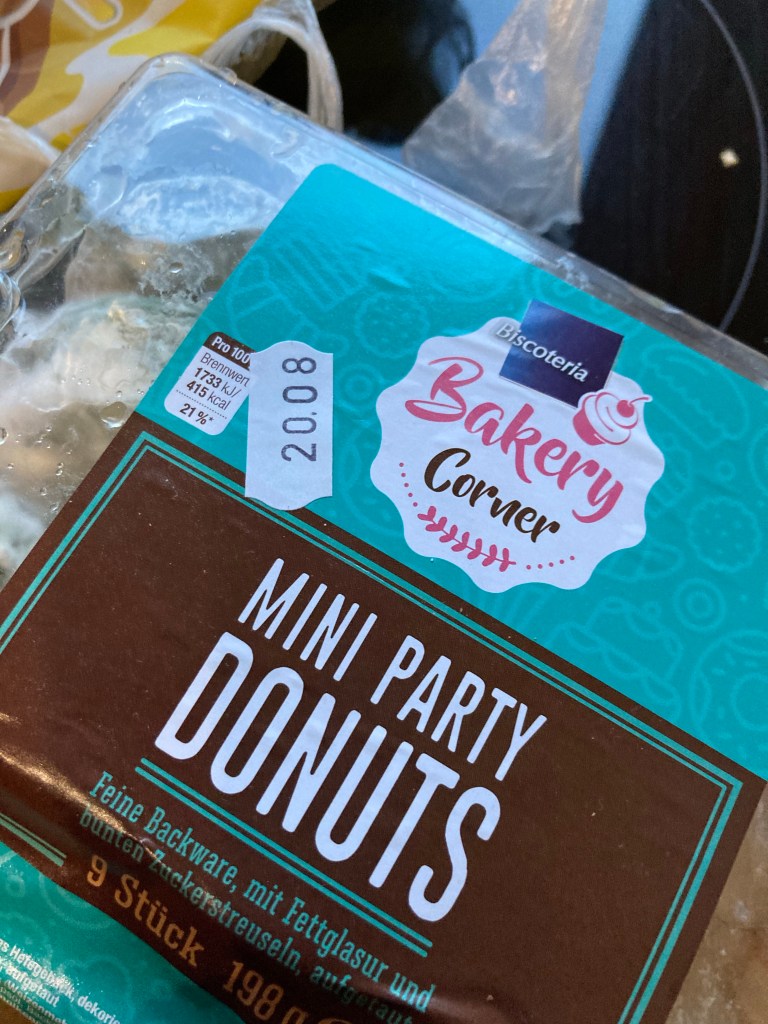 [folienstern:] „Iiih, in einem Zimmer war noch uraltes Sushi – ach ne, das ist gar kein Sushi! Das waren mal Donuts, die sind nur so weiß geschimmelt. Krass. Was sich so alles entwickelt 4 Monate nach dem Haltbarkeitsdatum …Gut, dass die Packung noch ganz zu war! „