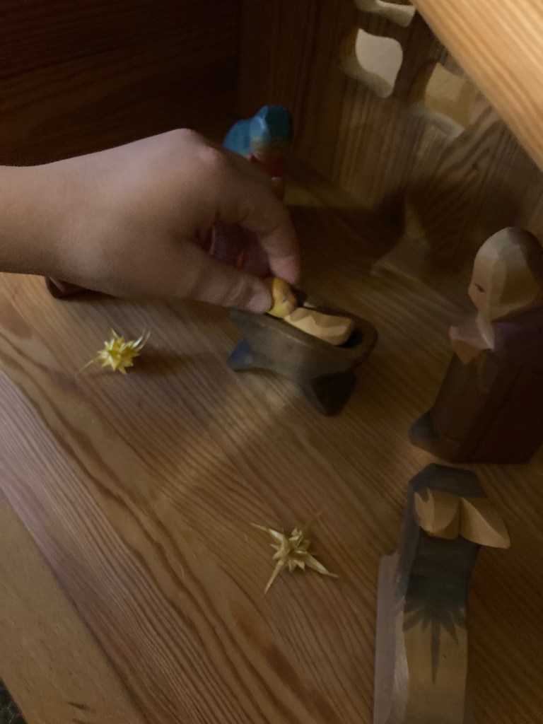 [KM:] „Hm, lecker Brötchen! Und das Jesuskind können wir heute in den Stall legen!““