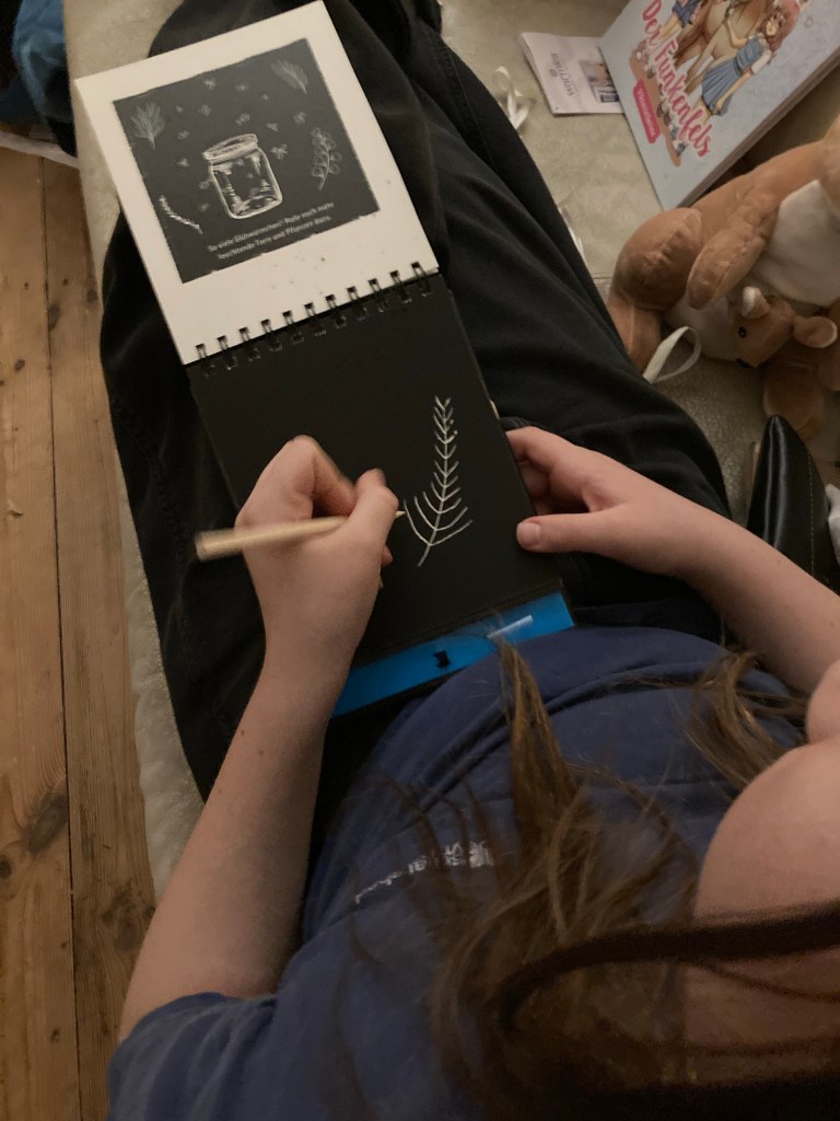 [KM:] „Guck‘ mal, ich hab schon ganz viel in meinem Kritzelbuch!“