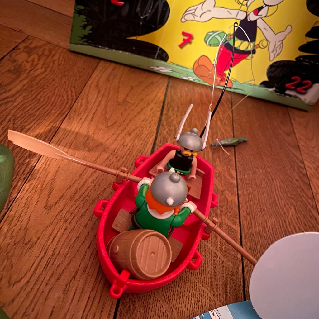 [GJ:] „Asterix! Der sitzt jetzt mit Teefax ein einem Boot. Und richtig coole Beatles-Socken, auf denen in verschiedenen Schriftzügen ‚Beatles‘ steht!“