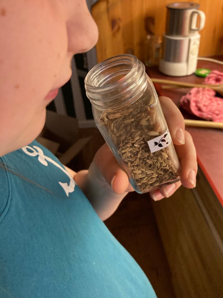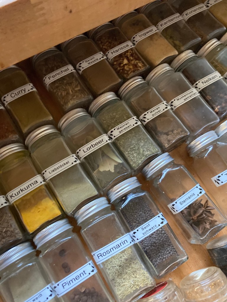 [KM:] „Ich mache jetzt einen Riechtest! Mama, teste mich mal mit den Gewürzen!“