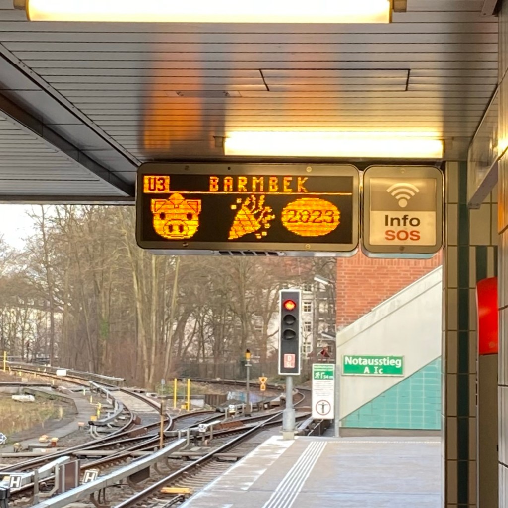[kneeteis:] „Ach, guck‘ an: Der HVV hat extra Neujahrsanzeigen geschaltet! Mal gucken, ob ich davon Fotos hinkriege…“
