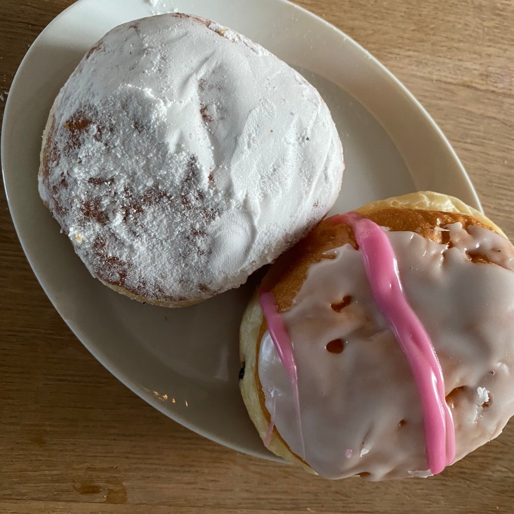 [kneteeis:] „Wie gut, dass es beim Bäcker an der Bushaltestelle noch Berliner gab. Jetzt bin ich versorgt für den Neujahrsnachmittag!“