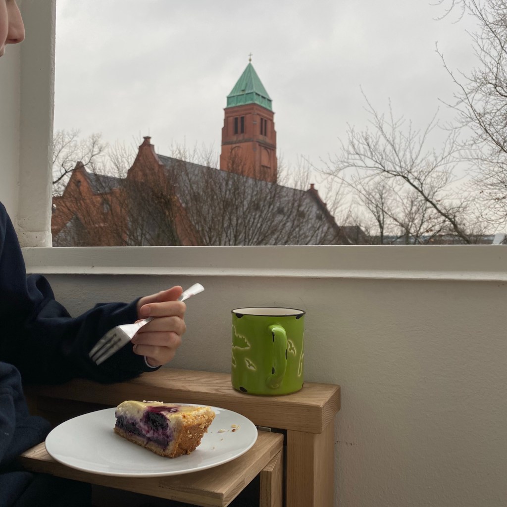 [GJ:] „Weißt Du was? Ich gehe Kuchen kaufen, und dann machen wir Tee und Kuchen auf dem neuen Balkon, ja?“