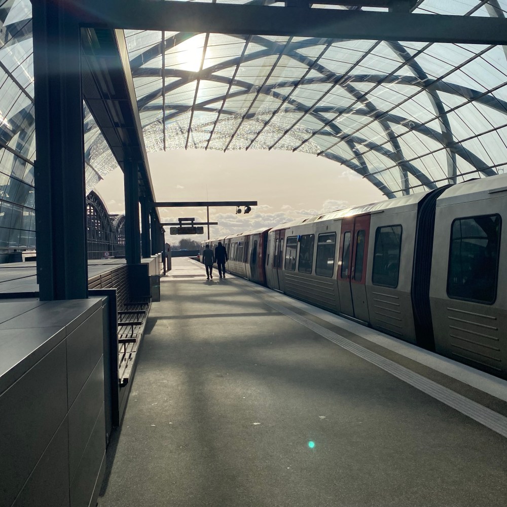[Etwas später. kneteeis:] „Boah, das Wasser der Elbe spiegelt sich da am Stationsdach. Mal gucken, ob man das auf einem Foto sieht…“