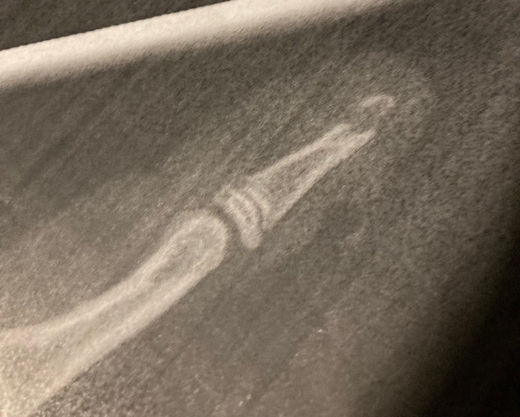 [folienstern:] „Naja, das war ja auch ziemlich doll gequetscht und gebrochen. Und ich wusste nicht, dass man Fingernägel annähen kann! Und Löcher in den Nagel bohren, damit es sich nicht staut….“