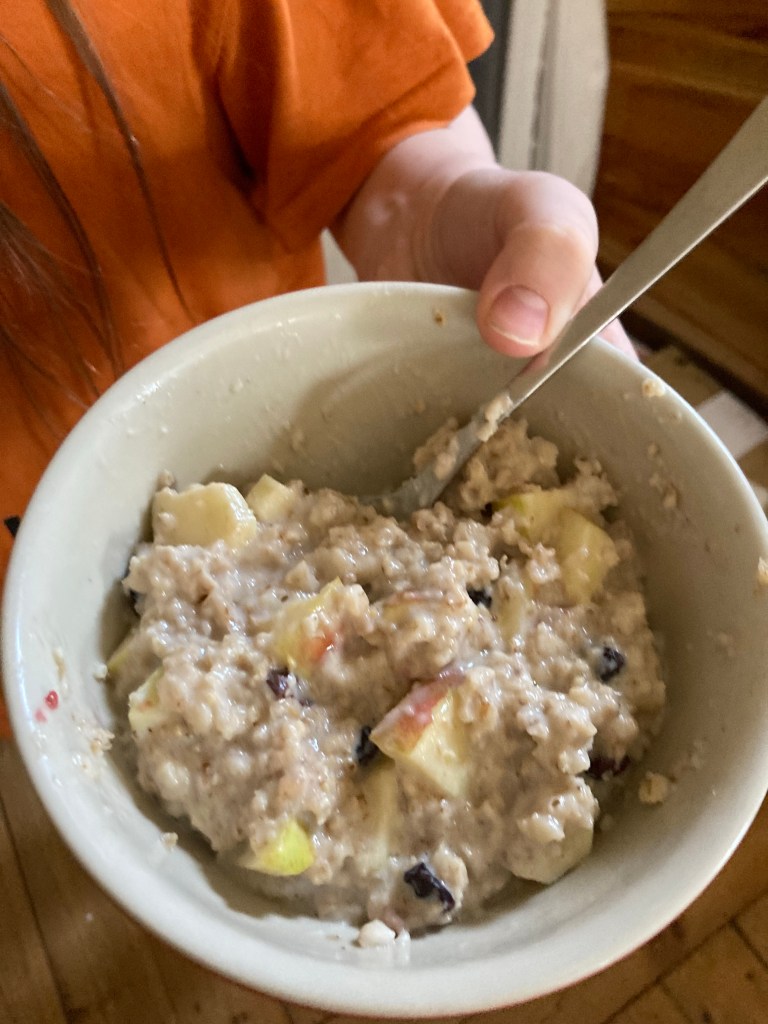 [GM:] „Ich mache mir noch von dem Porridge, den wir mit der Lieferung von dem neuen Online-Supermarkt bekommen haben!“
