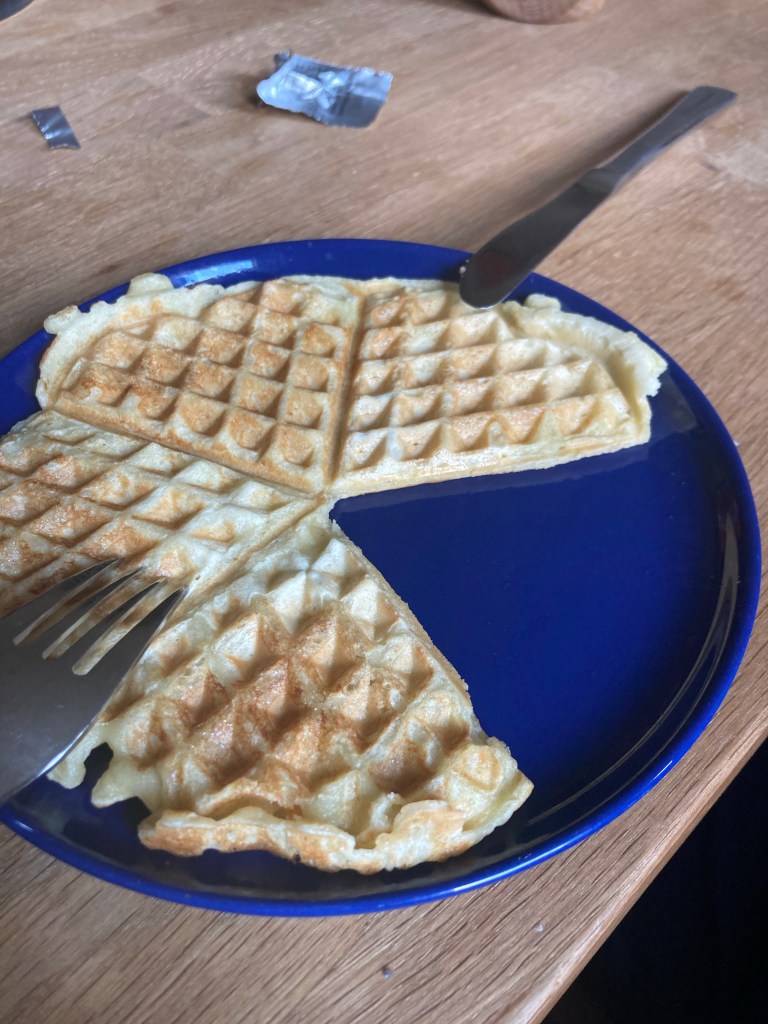 [kneteeis:] „So. Jetzt mache ich mir Grützwurst mit Kartoffelbrei und Apfelmus. Grützwurst mag der große Junge gar nicht, da nutze ich es aus, dass er unterwegs ist…“