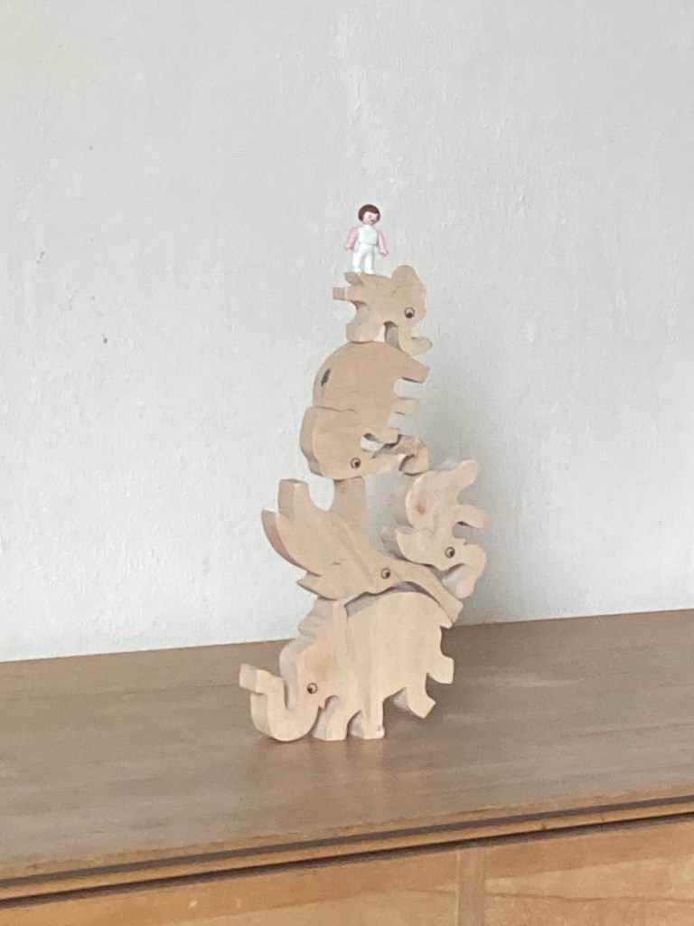 [Vater:] „Die darf jetzt auf den Elefanten stehen!“