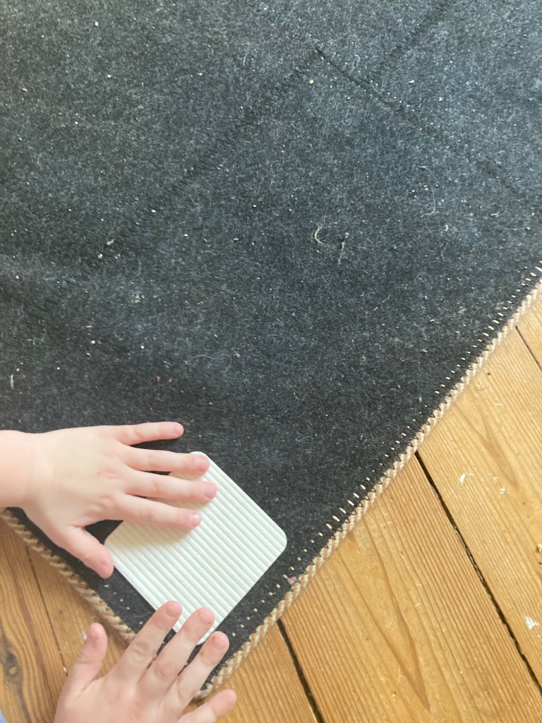 [folienstern:] „Klebeteile für den Teppich, damit der nicht verrutscht!“
