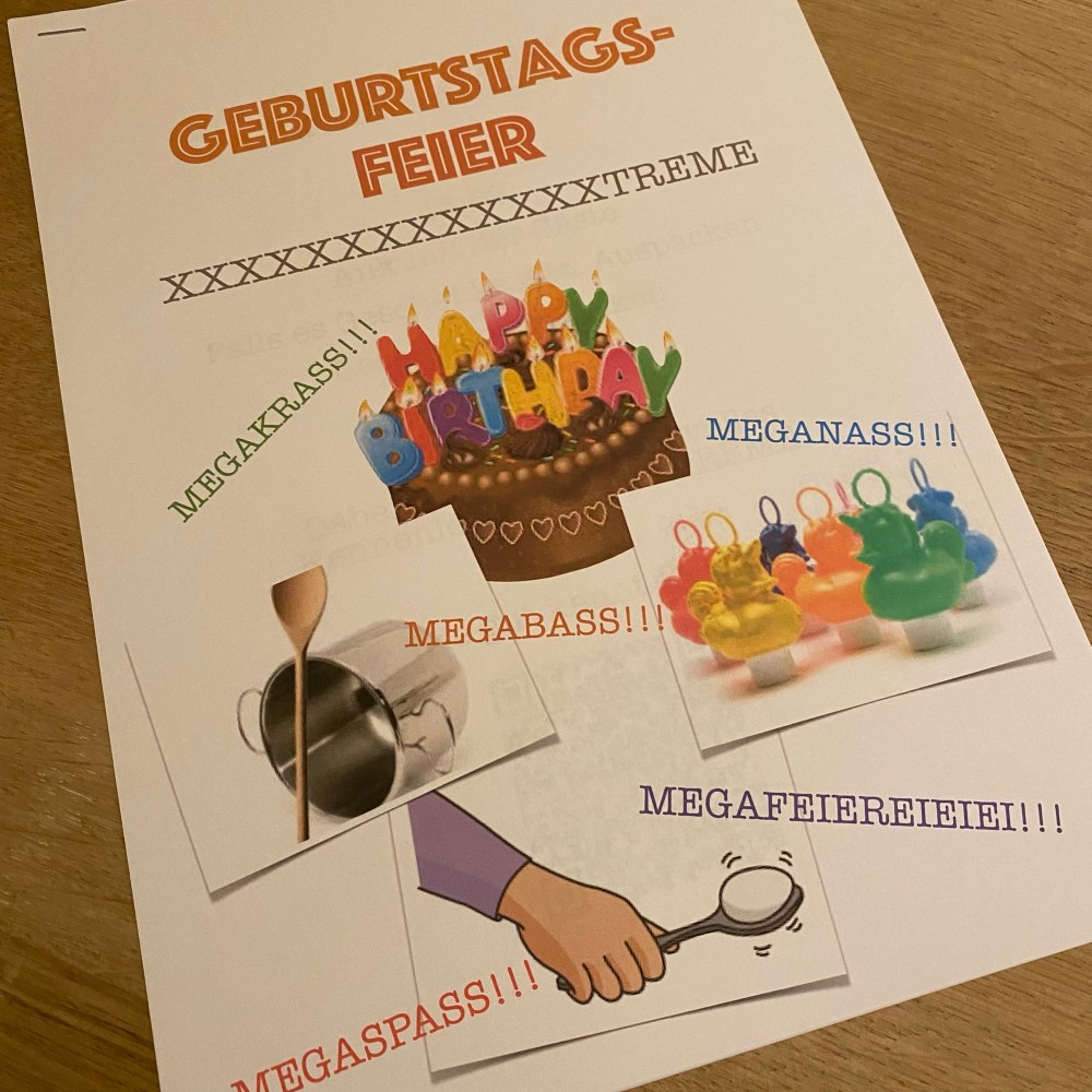 [kneteeis:] „So. Die Vorbereitung für die Geburtstagsparty vom großen Jungen am Montag ist eingetütet. Ich hoffe, es gefällt den großen Jungs…“