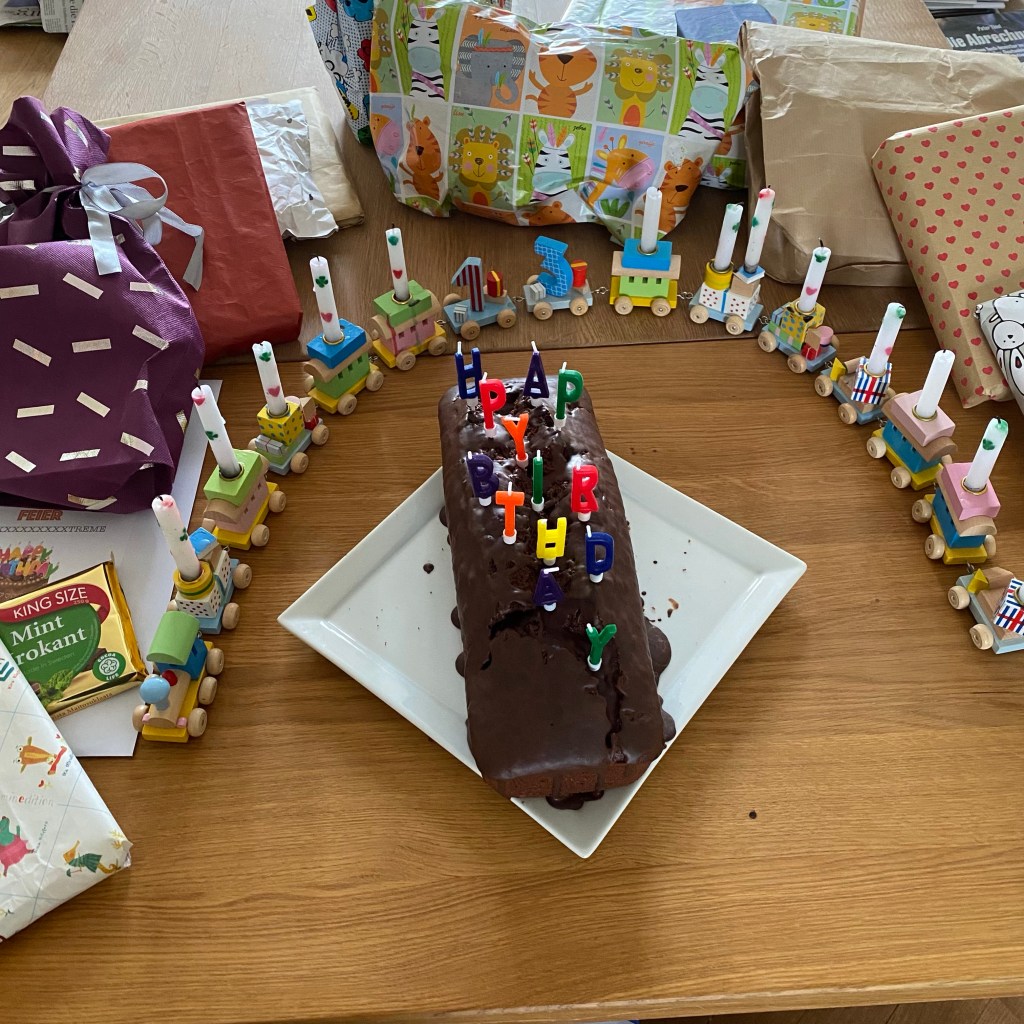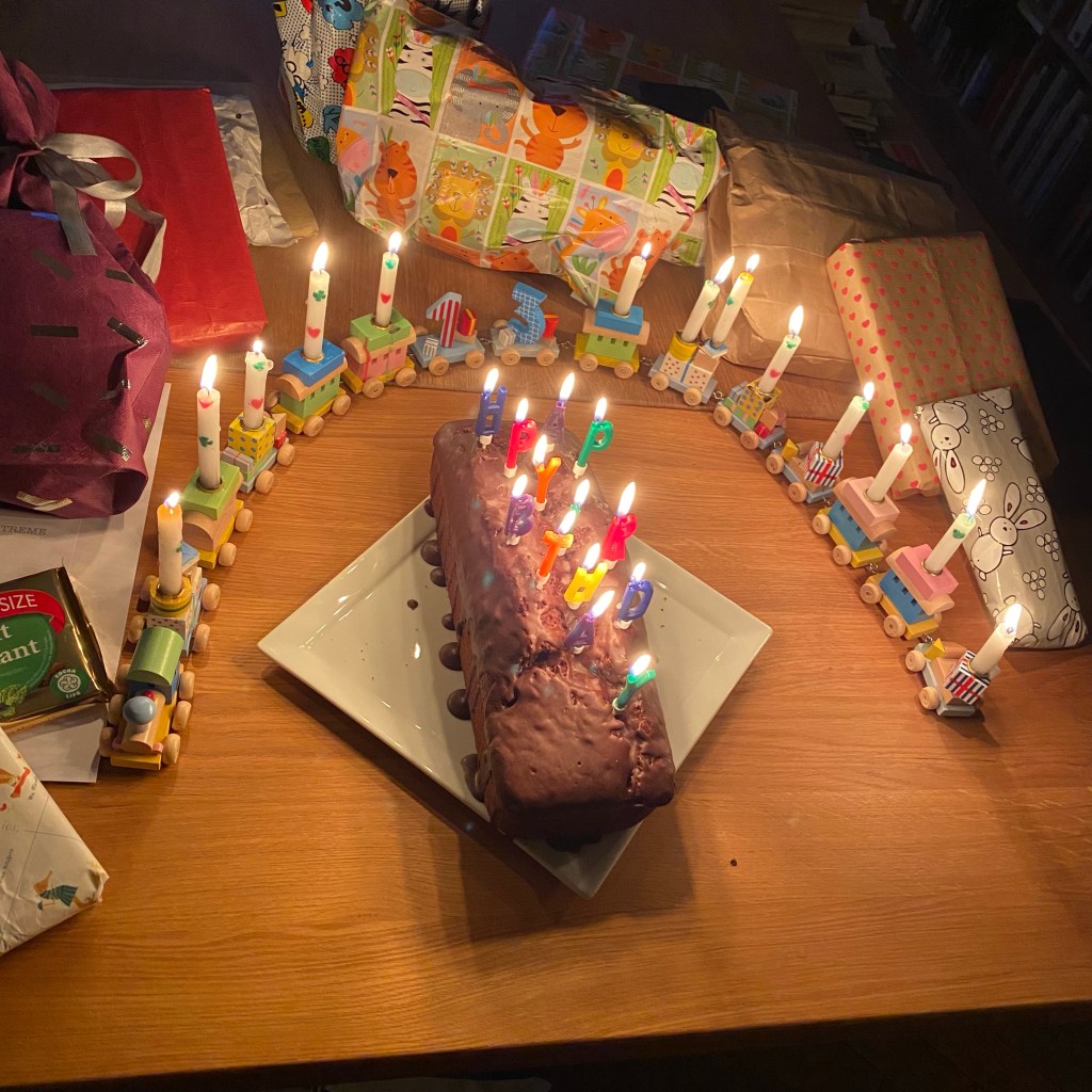 [GJ:] „Oh, ich werde drei Jahre alt! Oder nein: Ein Jahr! Oder nee: 13 Jahre! Und Happy Birthday hat genau dreizehn Buchstaben – wie cool! Wenn ich 22 werde, kannst Du dann Kerzen zu ‚Alles Gute zum Geburtstag‘ machen!“