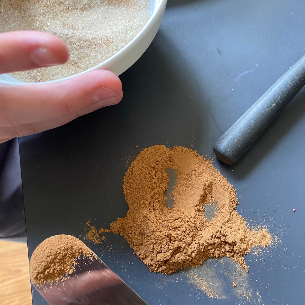 [Kurz darauf. kneteeis:] „So, jetzt kann es Milchreis geben. Du musst nur noch schnell den Zimt und Zucker mischen.“