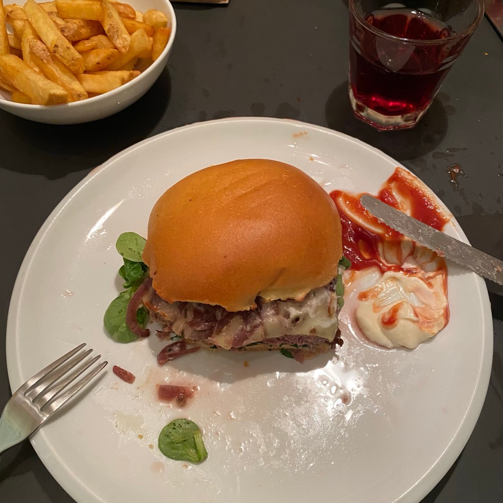 [Etwas später. kneteeis:] „Oh nein! Ich dachte, die Ketchupflasche fällt um und wollte sie festhalten, und dabei ist mir die ganze Holunderschorle über den Burger gekippt! Das war aber nicht mit Absicht!“