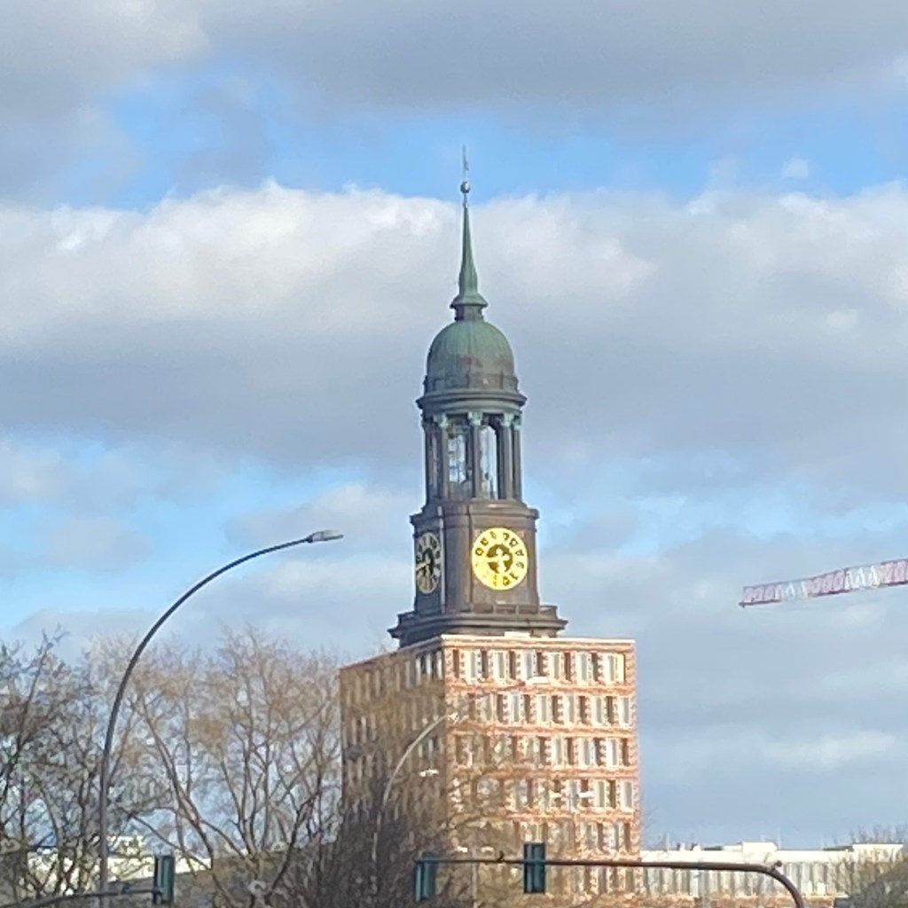 [kneteeis:] „Naja, vielleicht über den Dom? Ach, guck‘ mal: Das sieht aus, als ob der Michelturm auf diesem Haus stünde!“