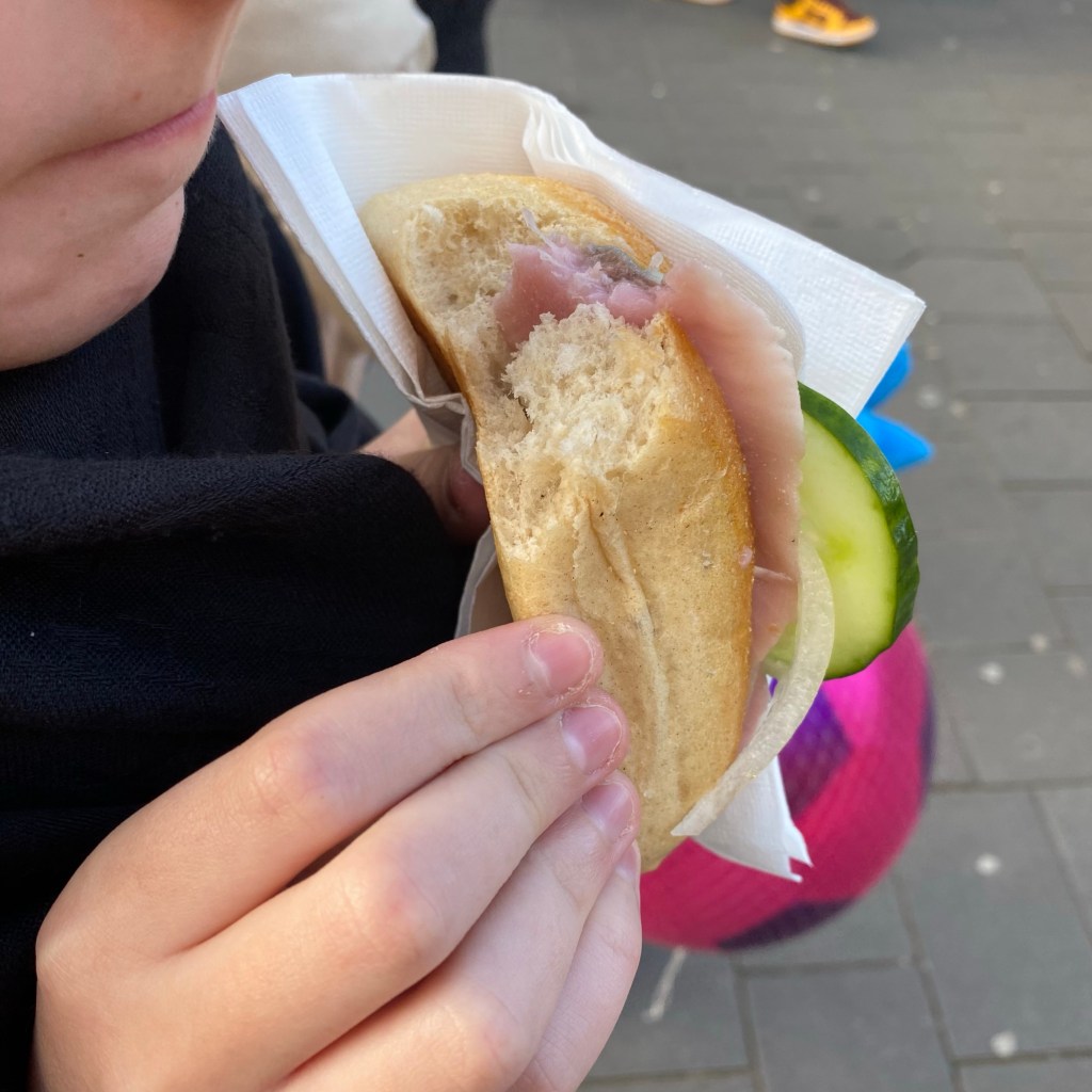[Kurz darauf. GJ:] „Da gibt es Fischbrötchen! Kaufst Du mir eins?“