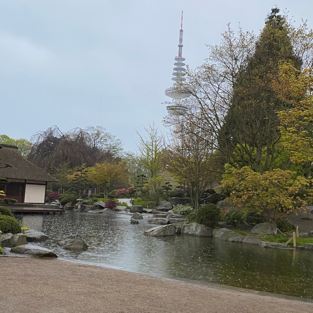 [Kurz darauf. GJ:] „Guck‘ mal: Das Foto vom japanischen Garten ist einmal im Original und einmal bearbeitet. Da sieht man den Regen gar nicht mehr!“