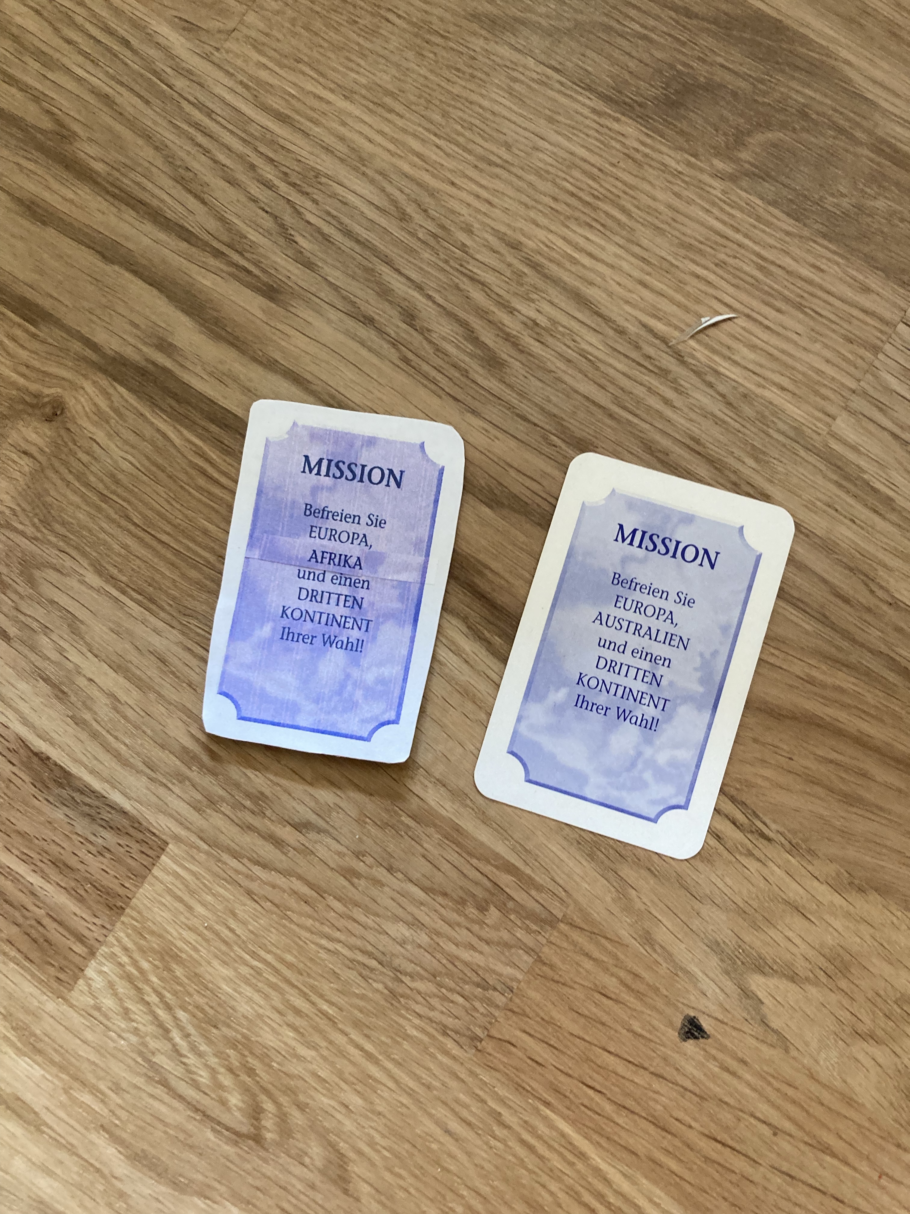 [Noch etwas später. folienstern:] „Also – die zwei Länder konnte ich nachbestellen. Und die Mission habe ich mal gebastelt.“