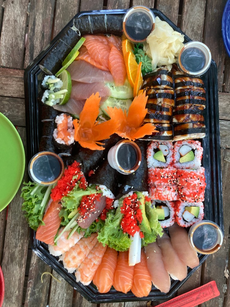 [folienstern:] „Kleiner Junge, guck mal – unser Lieblingssushirestaurant liefert jetzt! Soll ich mal Sushi bestellen, damit wir dann gleich was zu essen haben, wenn das kleine Mädchen vom Hockey kommt?“