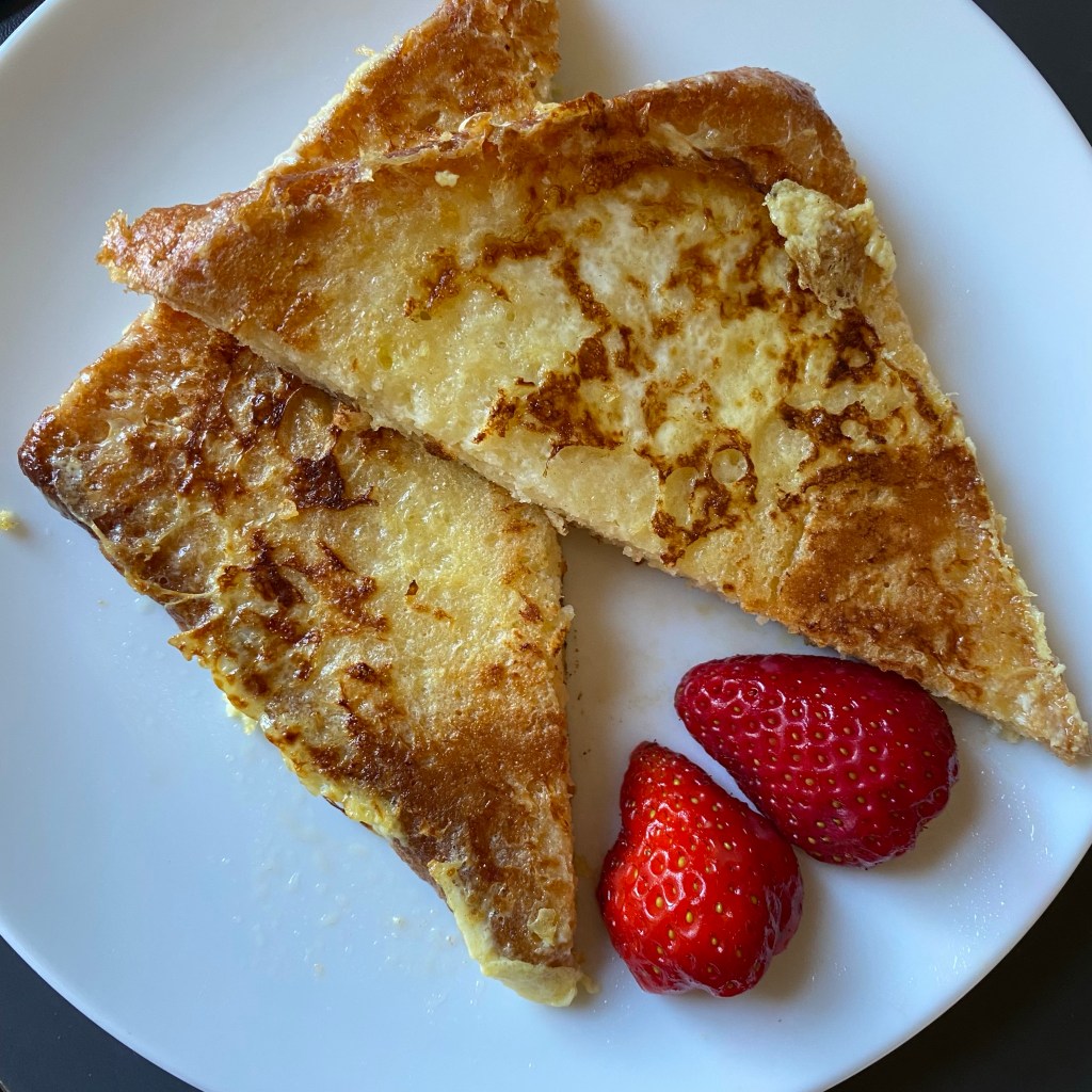 [Kurz darauf. GJ:] „Oh, super! French Toast! Das ist mit Ei und süß!“