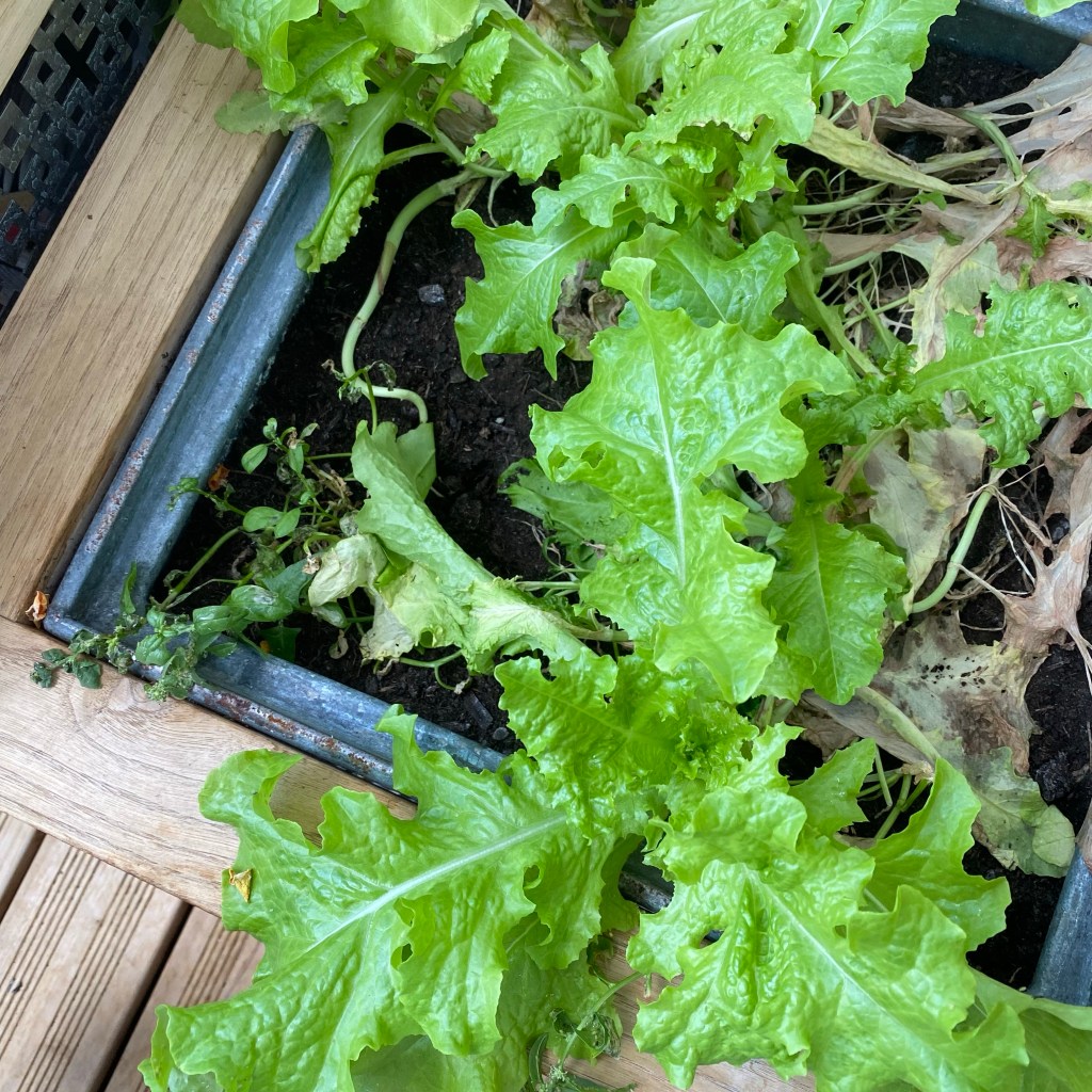 [kneteeis:] „Ich ernte jetzt unseren eigenen Salat und mache damit Salat, okay?“