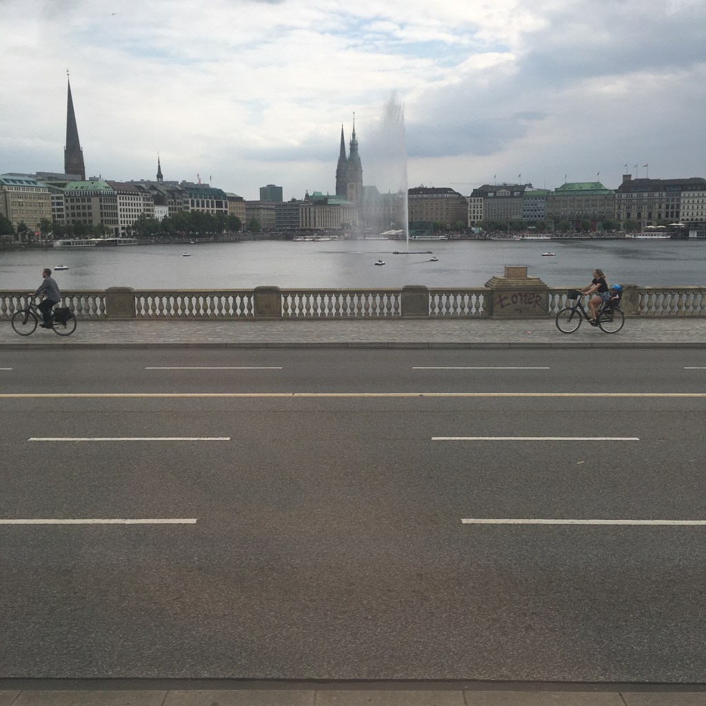 [BB:] „In Berlin selbst hatte ich keine Zeit, um Fotos zu machen., Aber ich habe Fotos von der Alster, vom Bahnhof Spandau auf der Hin- und auf der Rückfahrt, von meinen Hausaufgaben im Zug und vom Apfelkuchen! Die Zugfahrt war überhaupt super!“