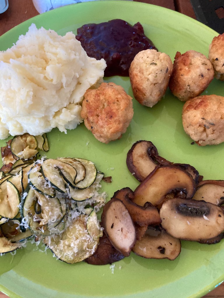 [KM:] „Sind das echte Fleischbällchen oder vegetarische?“