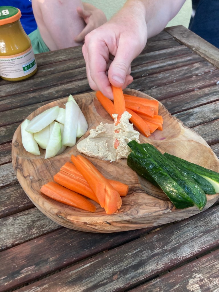 [KM:] „Hm, lecker Hummus! Ist der selbstgemacht?“