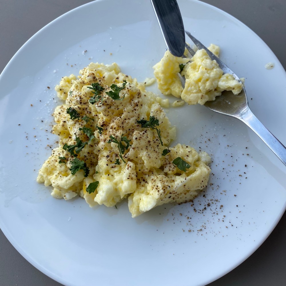 [GJ:] „Jetzt habe ich doch noch Hunger, ehe ich losfahre zum Mathekurs und zum Training. Machst Du mir ein Rührei, bitte?“