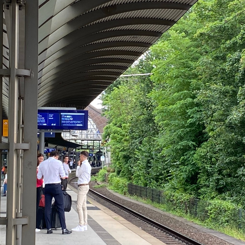 [Hamburg. Etwas später am Bahnhof. GJ:] „Der Zug hat 20 Minuten Verspätung!“
