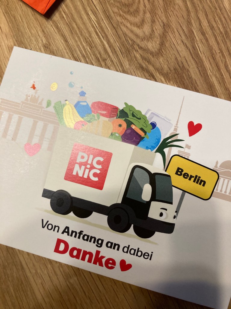 [folienstern:] „Das scheint genauso gut zu funktionieren wie Oda, ein Glück! Guck mal, es gab sogar eine nette Karte zur ersten Bestellung!“