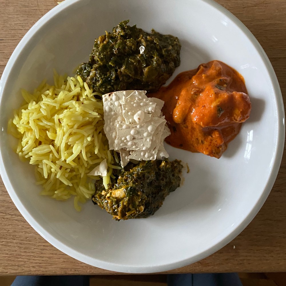 [Etwas später. BB:] „Jetzt habe ich Appetit auf indisches Essen, weil die Nachbarn auch gerade indisch bestellt hatten.“