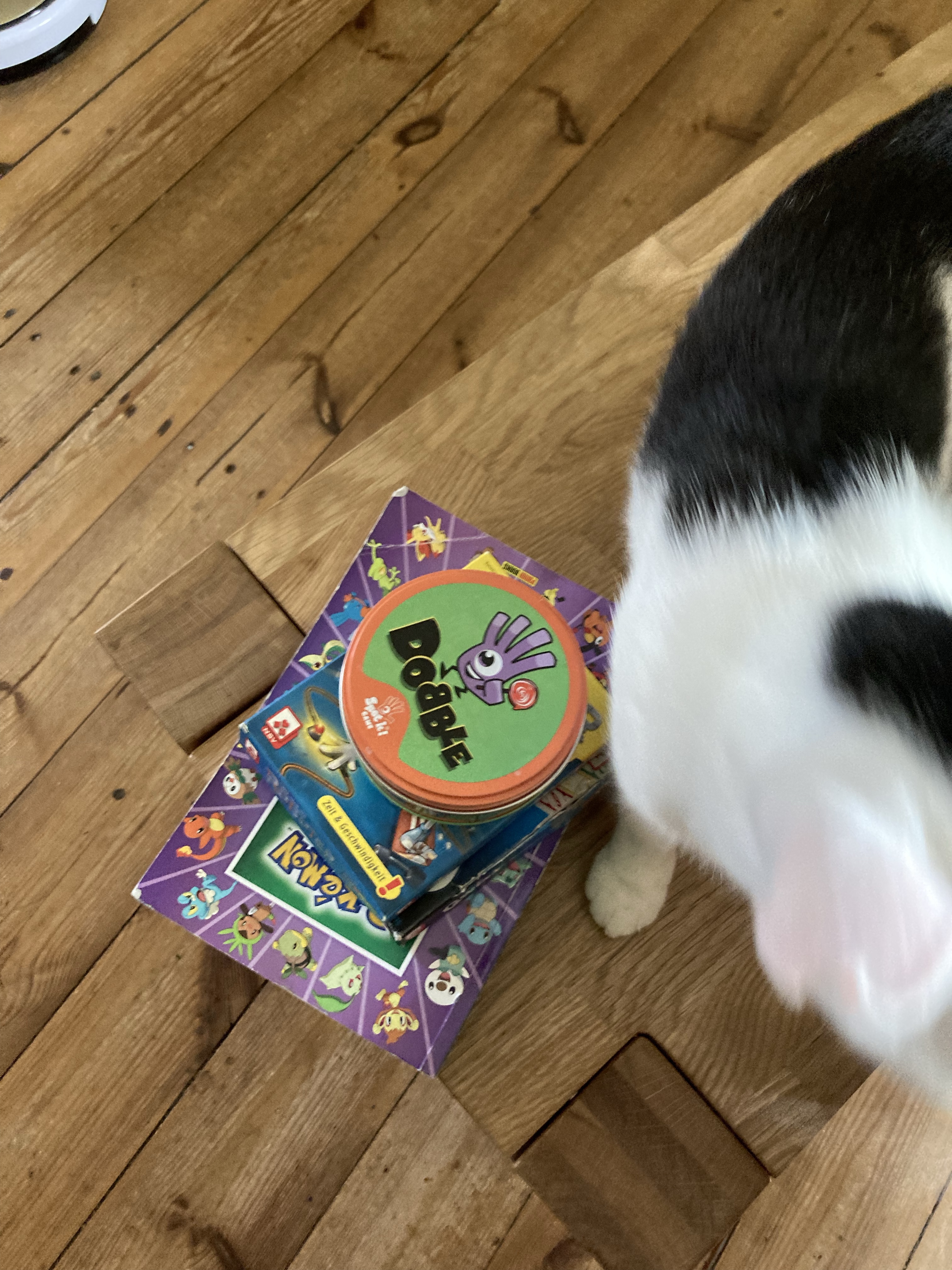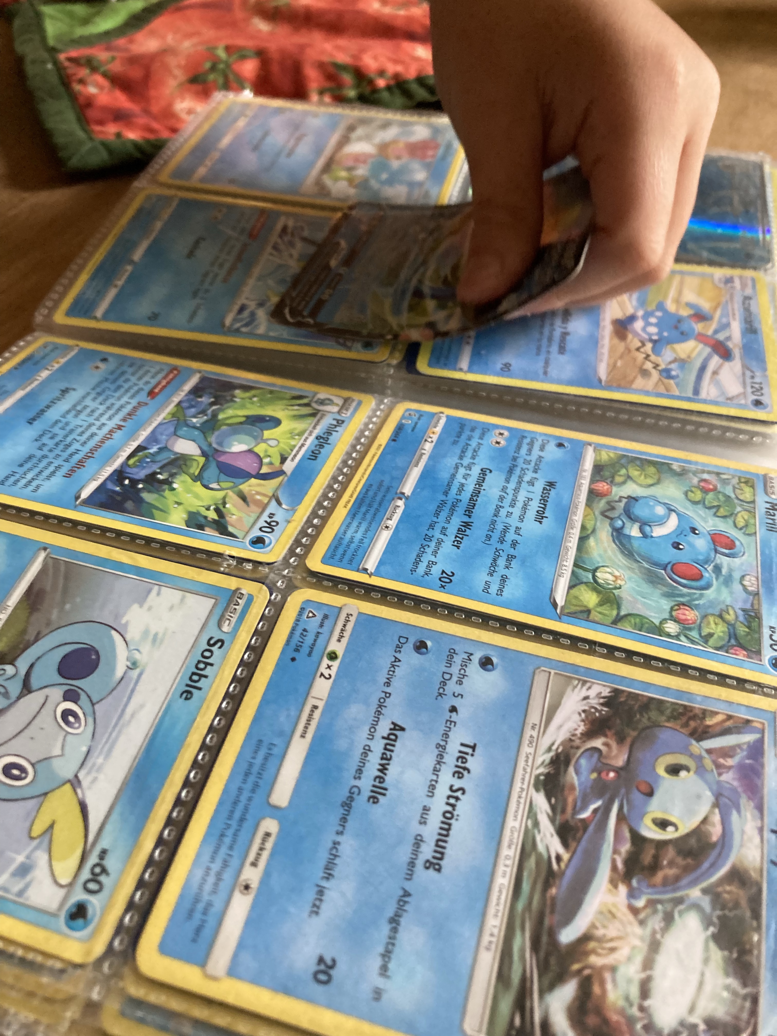 [KJ:] „Guck mal, ich tu die Pokemonkarten übereinander! Damit man sieht, was zusammengehört.“