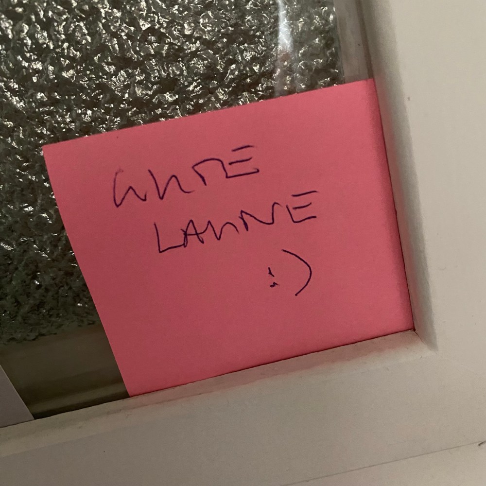 [kneteeis:] „Wie gut, dass der Big Boy beim Aufräumen den Zettel mit der guten Laune gefunden und an unsere Wohnungstür geklebt hat. Wie er richtig sagte: So hat man immer gute Laune, wenn man aus dem Haus geht!“