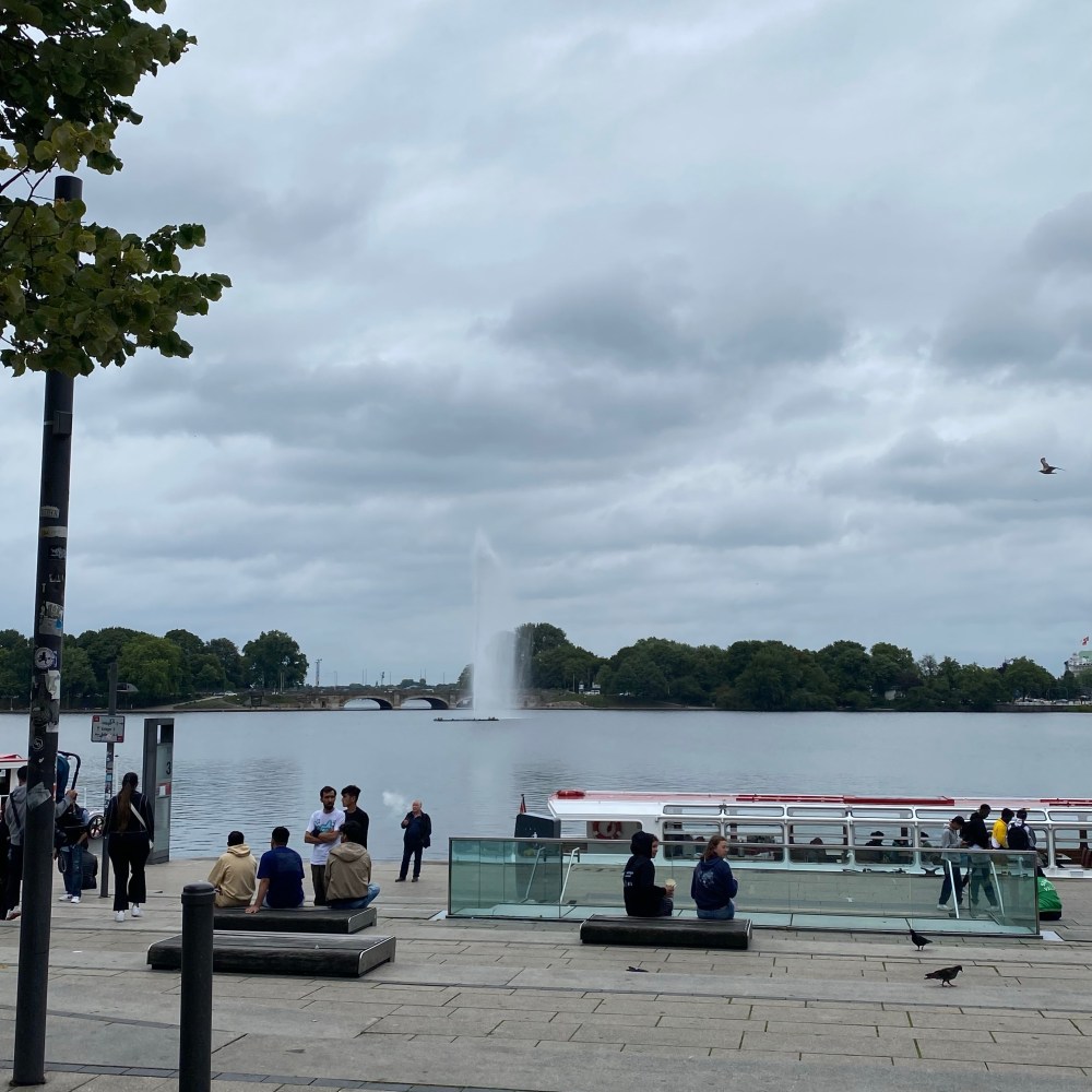[kneteeis:] „Hm, vor lauter Regen sieht man die Alsterfontäne kaum. Hoffentlich hat der Big Boy nicht so ein Mistwetter auf dem Segelboot!“