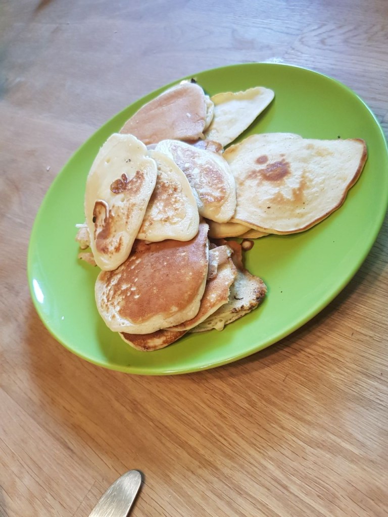 [folienstern:] „Ich geh kurz schwimmen und dann mache ich Pfannkuchen.“