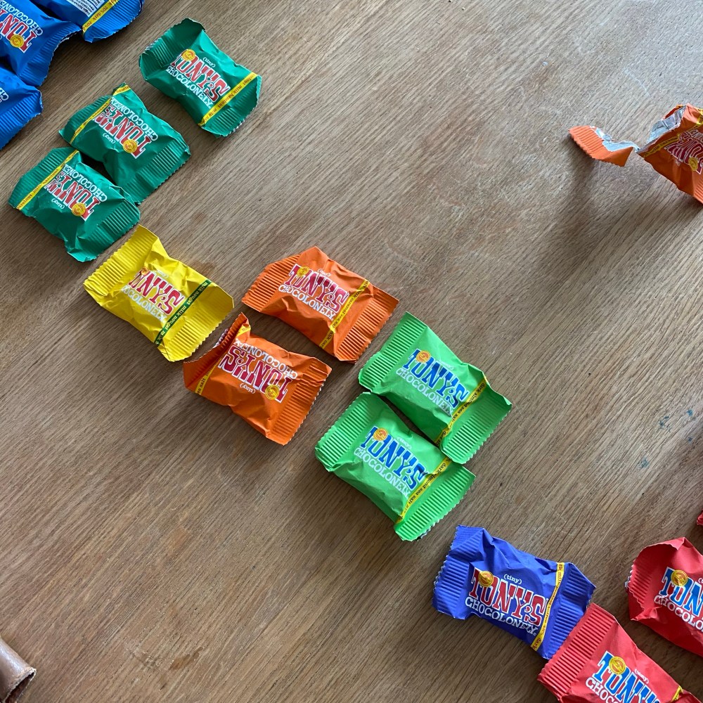 [BB:] „Ich sortiere mal die restlichen Schokoladen aus Amsterdam…“