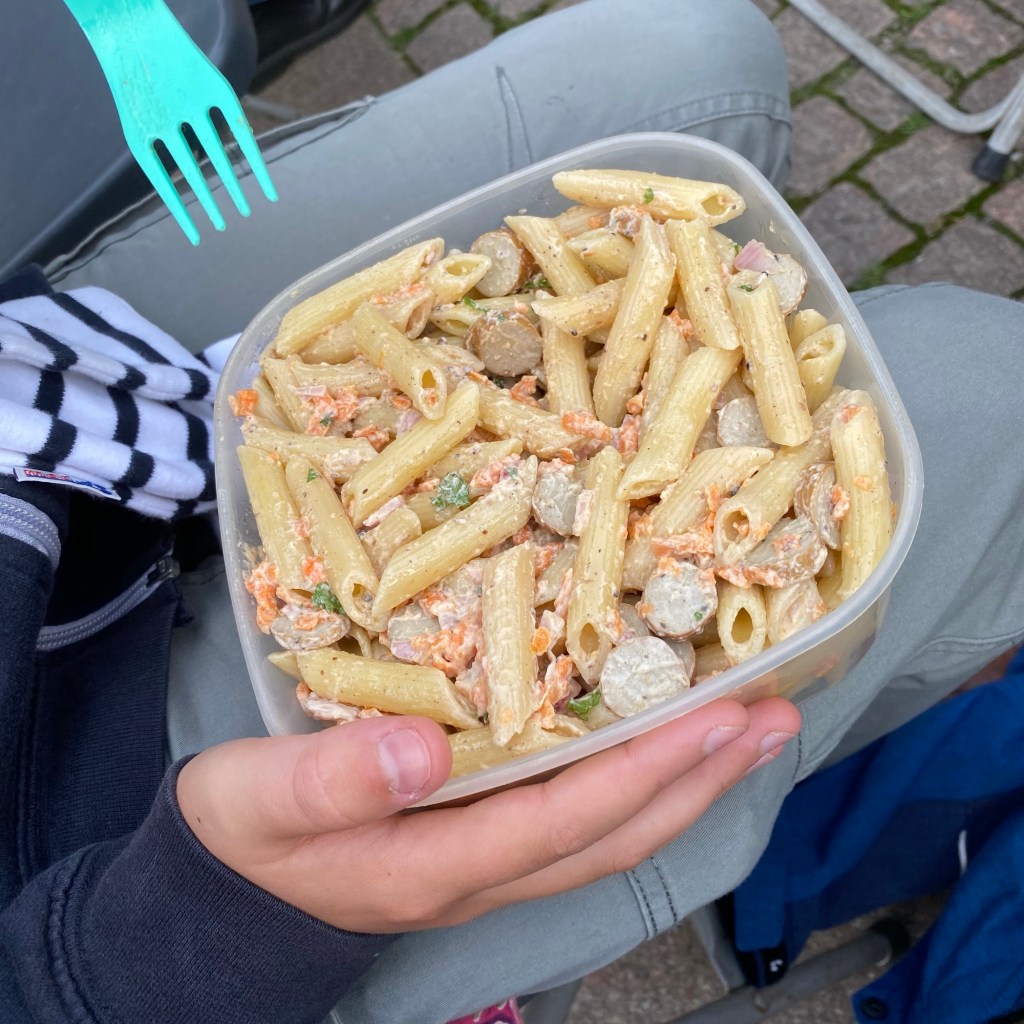 [BB:] „Ich mache Nudelsalat. Mit Würstchen.“