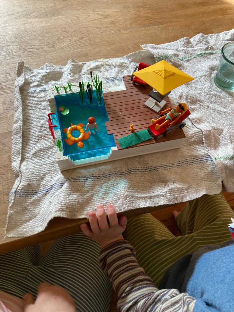 [KM, KJ:] “Mama, wir haben endlich das Schwimmbecken von Playmo aufgebaut!”