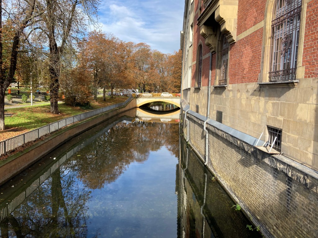 [Etwas später. KJ:] “Guck mal, die Brücke sieht aus wie ein Mund! Also, mit dem Teil im Wasser.”