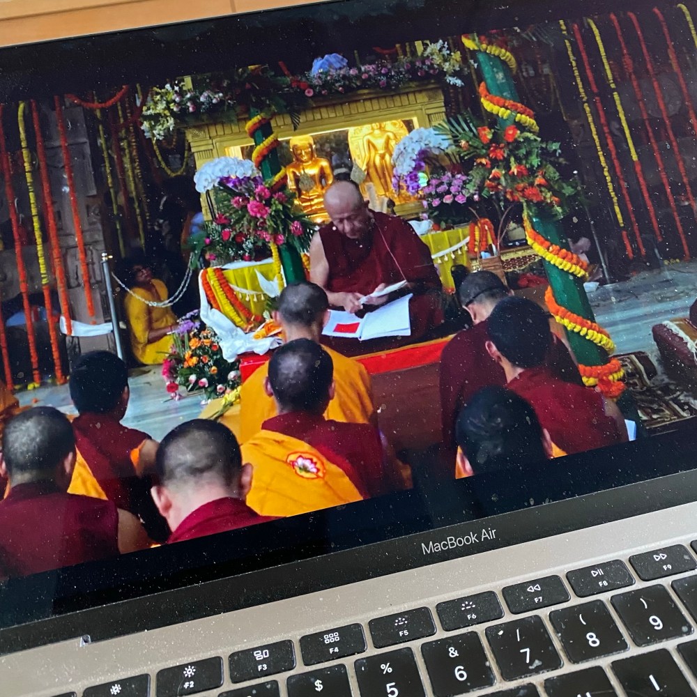 [kneteeis:] „Ach, wie schön: Teile von dem Gebetstreffen in Bodh Gaya werden online übertragen! Da gucke ich direkt mal rein – das ist ja fast, als wenn man selbst unter dem Bodhi-Baum sitzt. Und Weltfrieden können wir aktuell auch alle gut gebrauchen…“