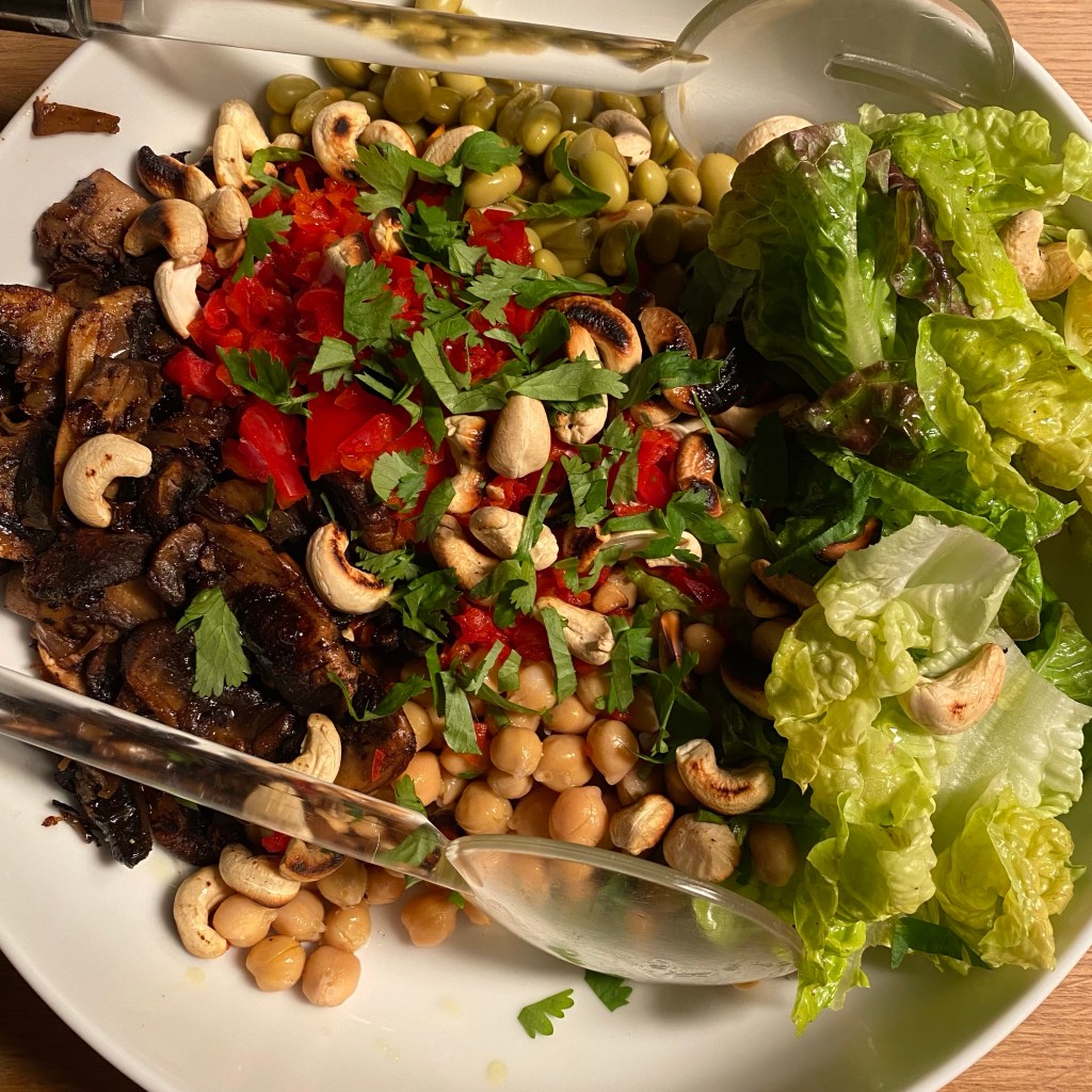 [Nachbarin:] „Der Salat ist sehr lecker! Und das Brot auch!“