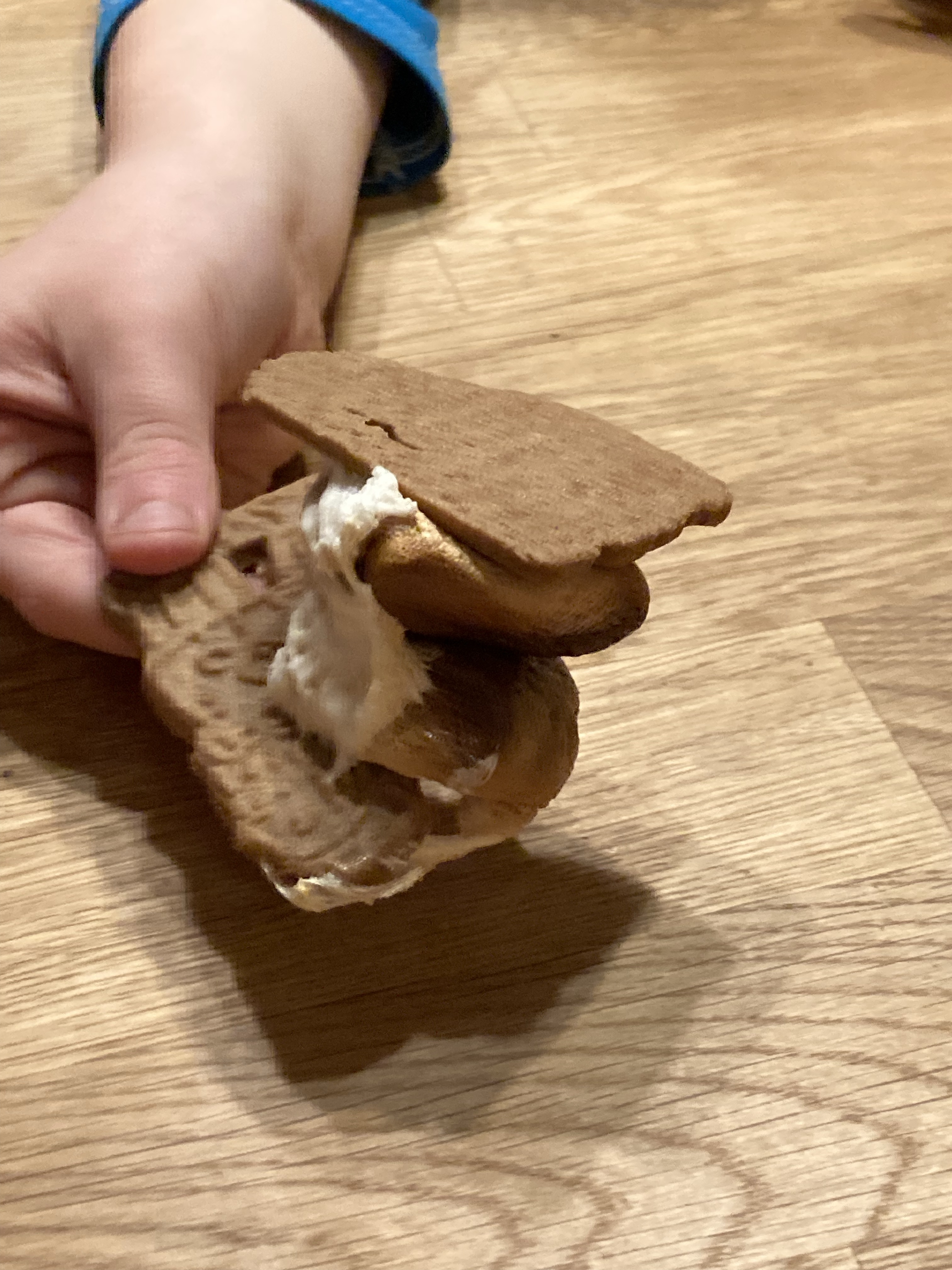 [KJ:] „Ich mache ein Sandwich mit den Spekulatius und den Marshmallows!“