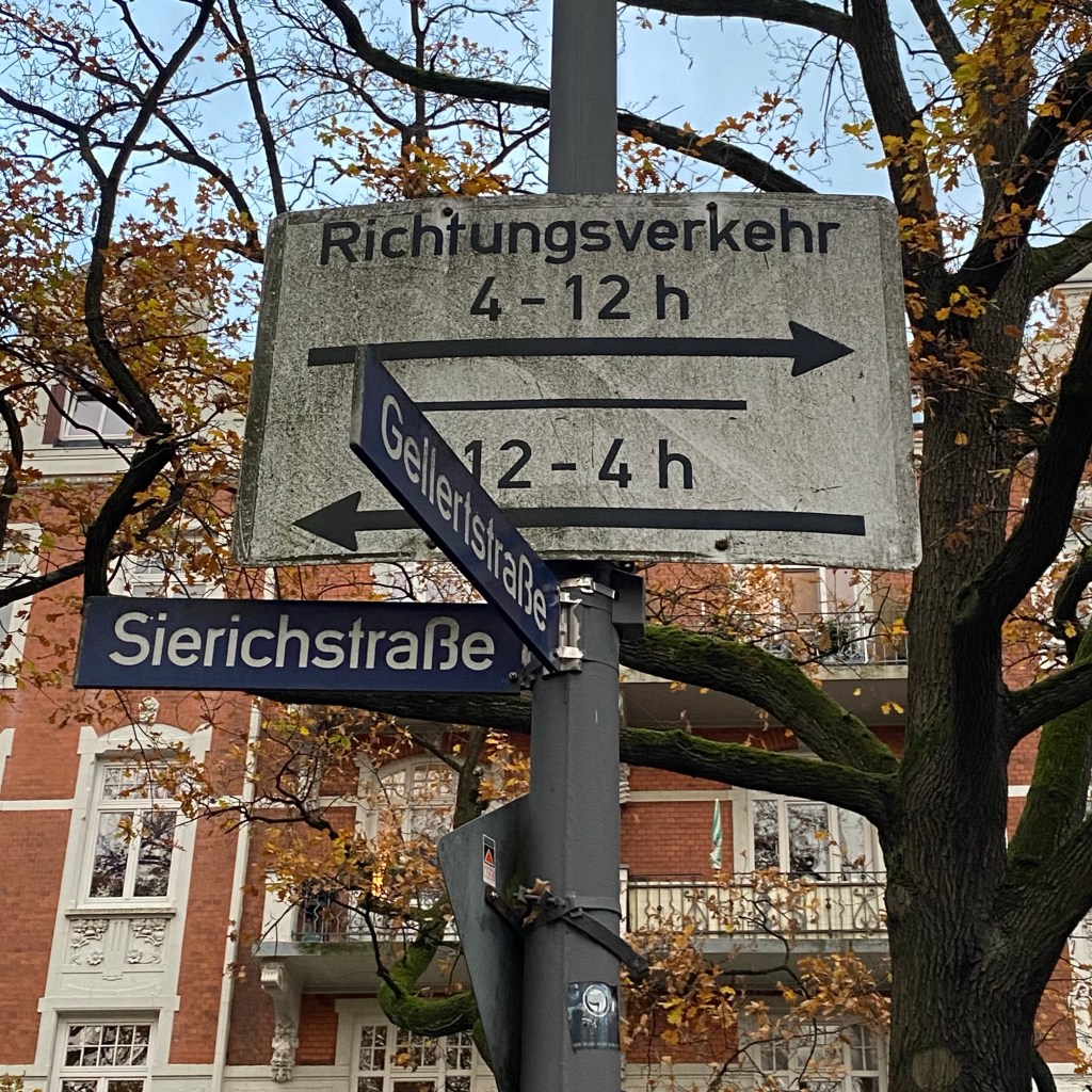 [kneteeis:] „Ich mag die Schilder, die erklären, wie die Sierichstraße funktioniert. Das versteht auch niemand, der nicht hier wohnt…“