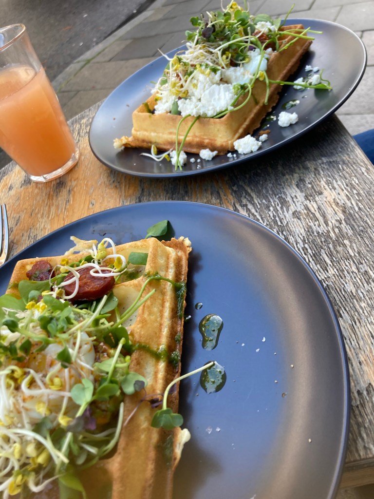 [Freundin:] “Ein Glück, unser Zug ist dann doch gefahren! Jetzt können wir Essen gehen, bevor Du wieder weitermusst. Es gibt da so ein nettes Waffelhaus …”