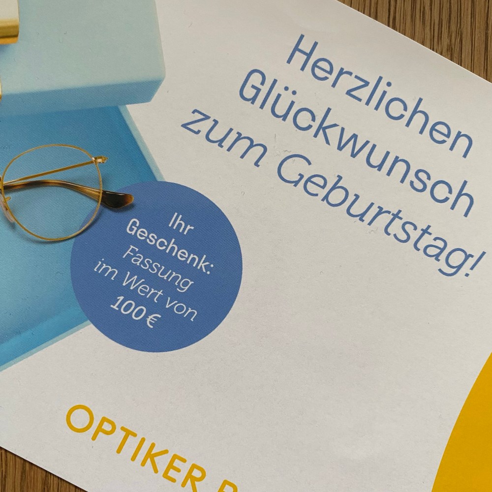 [kneteeis:] „Ach, guck‘ an: Der Optiker hat doch noch eine Geburtstagskarte geschickt! Und ich dachgte schon, die seien dieses Jahr ausgefallen wegen Kostensenkung oder Nachhaltigkeit – oder wiel ich die Gutscheine nie benutze…“